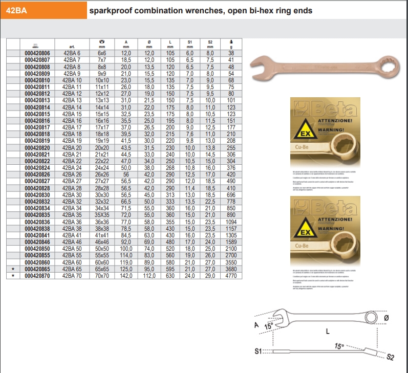 Kıvılcım Çıkarmayan Kombine Anahtar 42BA 9