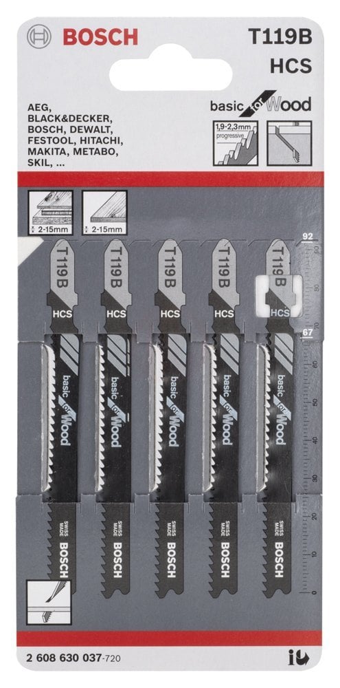 Bosch Dekupaj Testere Bıçağı Basic For Wood T 119 B 92 mm (5 Adet) – 2608630037