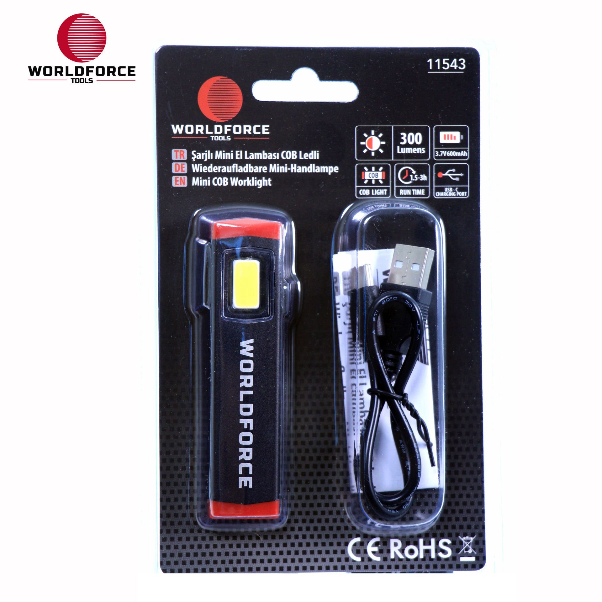 World Force – Şarjlı Mini El Lambası COB Ledli 300 Lm (600 mAh)